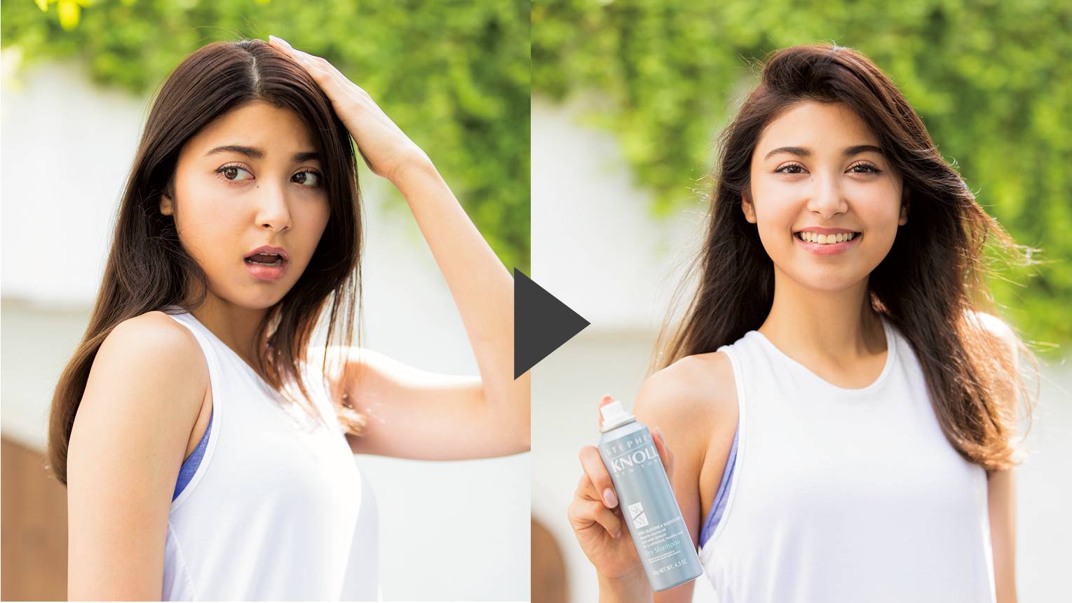 汗をたっぷりかく夏場は、ヨガ後の髪の「ベタつき」「ペタンコ」が気になるもの。洗い流し不要の「ドライ シャンプー」を使うだけで、頭皮がすっきりして根元からふんわり立ち上がります!