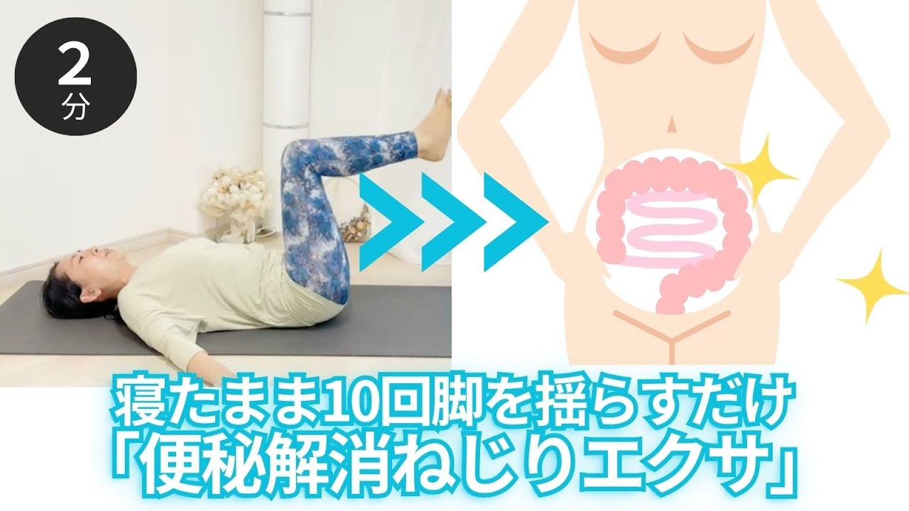 毎日2分でスッキリ【寝たまま10回脚を揺らすだけ】便秘が自然に解消する「ねじりエクサ」