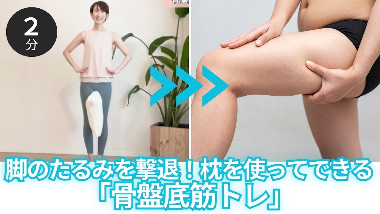 気になる内腿のたるみ。インナーマッスルの力が弱いと外側の筋肉ばかり使うことで内側の内転筋群が弱くなり内腿のたるみにつながります。誰もが持っている「枕」を使って美脚になれる!骨盤底筋トレーニングをご紹介します。