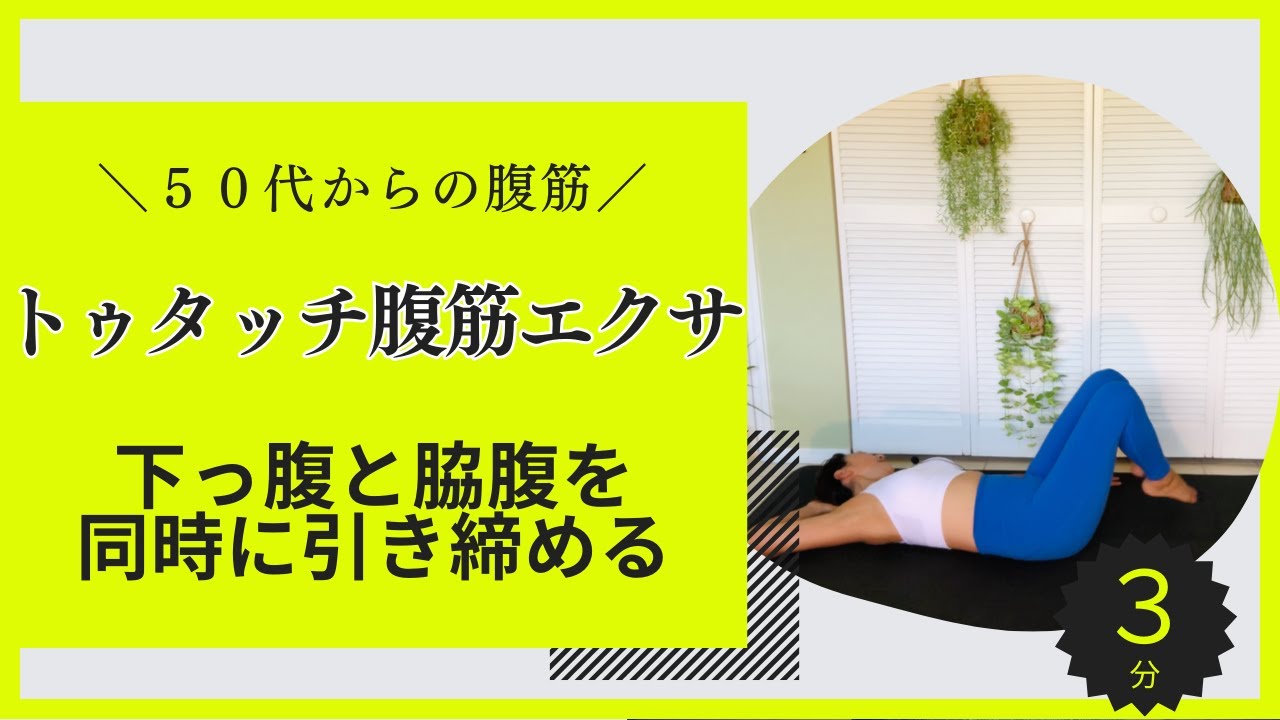 50代からの腹筋の正解【首や肩を痛めない】下腹と脇腹を同時に引き締めるトゥタッチ腹筋エクサ