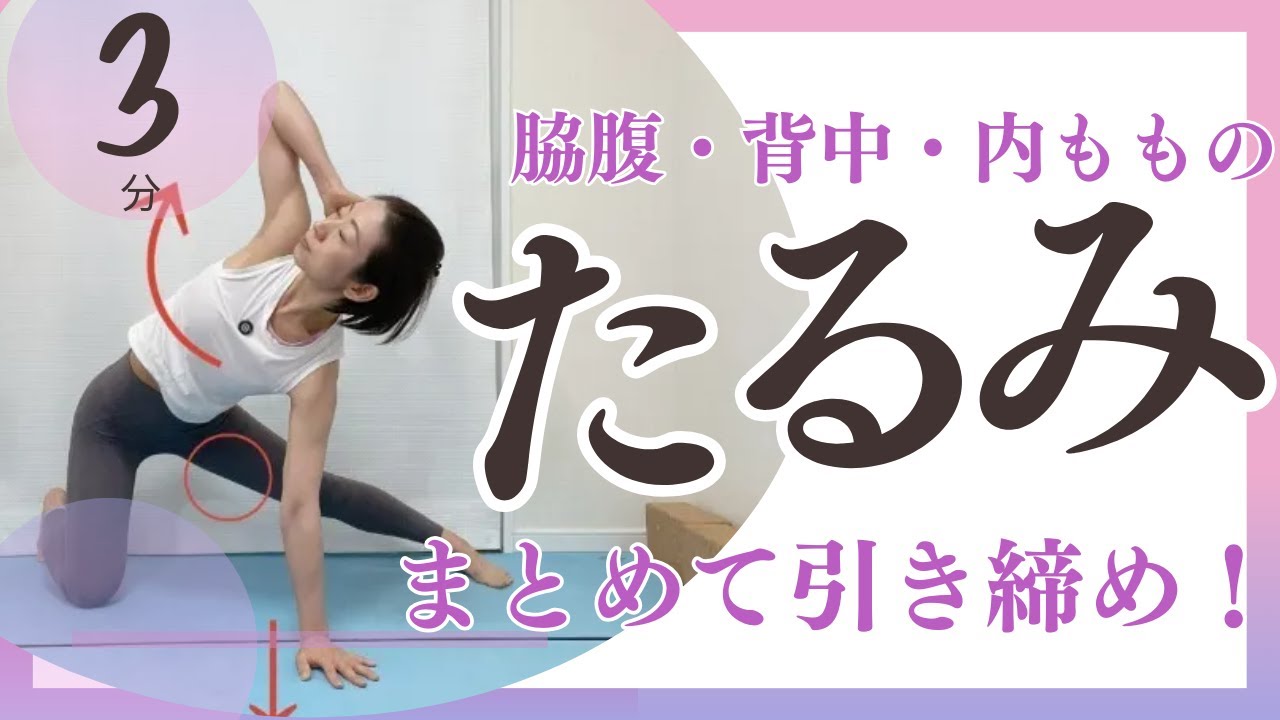 今回のエクササイズでは、背骨をひねる動きを取り入れながら、内腿(内転筋)や脇腹(腹斜筋)を伸ばして刺激します。気になるお腹まわりはもちろん、下半身のたるみもまとめてすっきりさせましょう!