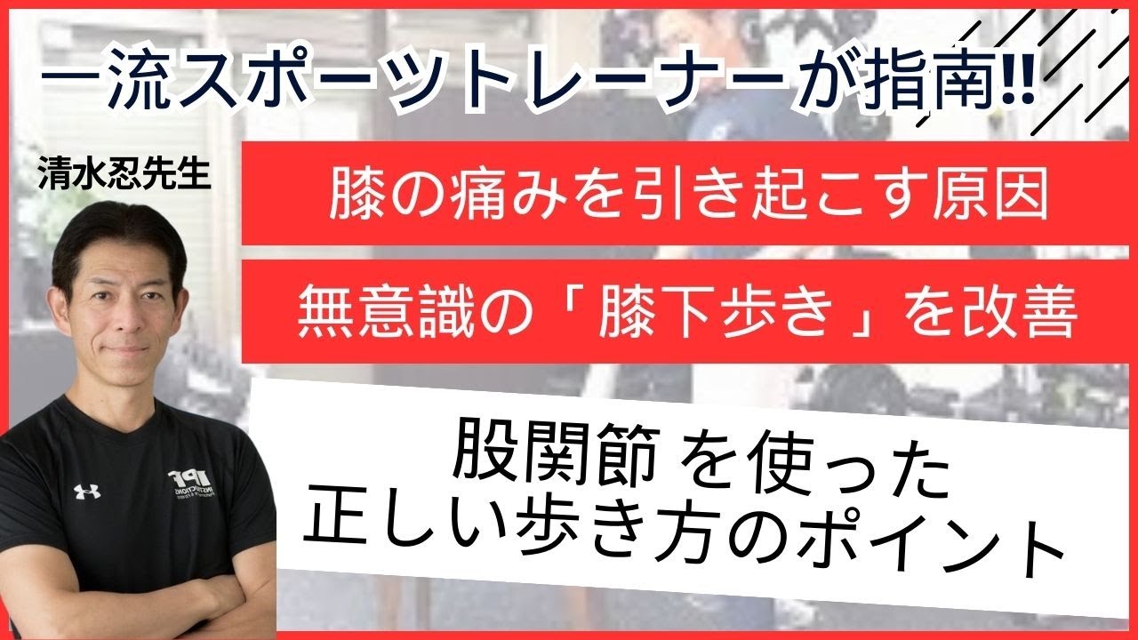 膝に痛みが出ると「老い」を感じてショック!という人は多いのでは。しかし膝痛は加齢によるものとは限らず、歩行時の膝の使い方を改めると痛みが和らぐことがあります。歩き方と膝痛の関係、そして膝痛の根本的な解決策をメジャーリーガーの菊池雄星投手をはじめ、一線級アスリートのパーソナルトレーナーとして高い信頼を得る清水忍先生がレクチャーします。