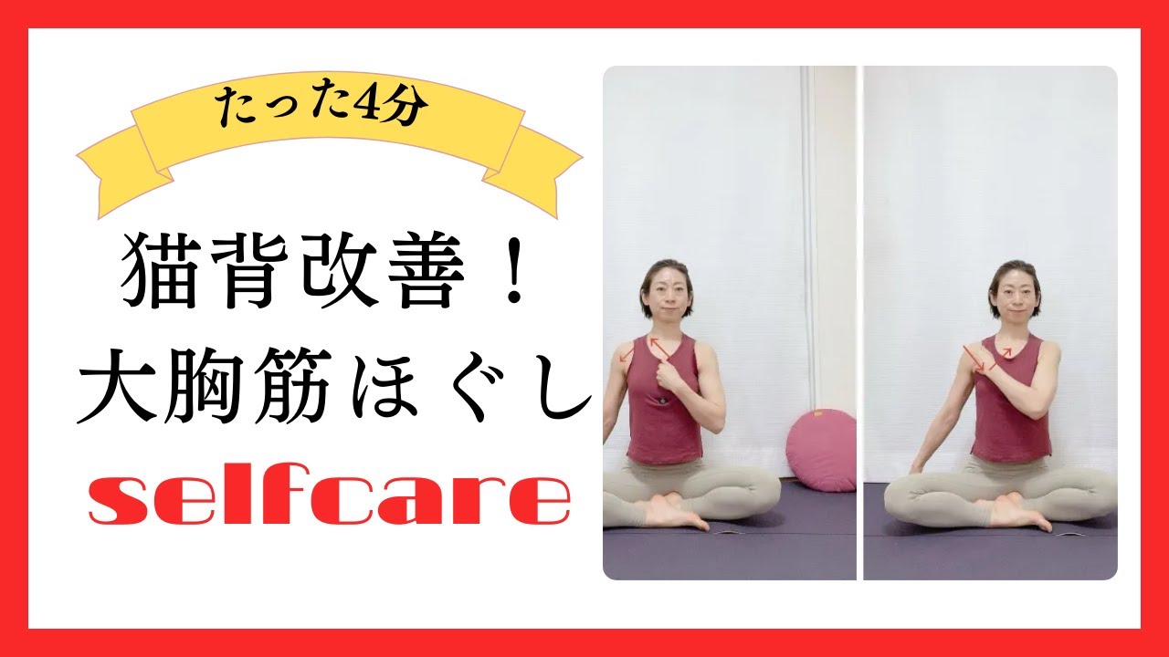 今回は、猫背改善に効果的なセルフケアをご紹介します。ヨガで胸を開くポーズが苦手な人、ストレッチをしても猫背や巻き肩が解消せず、肩こりがつらい人必見!座ってできる簡単なセルフマッサージです。椅子に座ったままでもできるので、仕事の合間にもおすすめですよ!