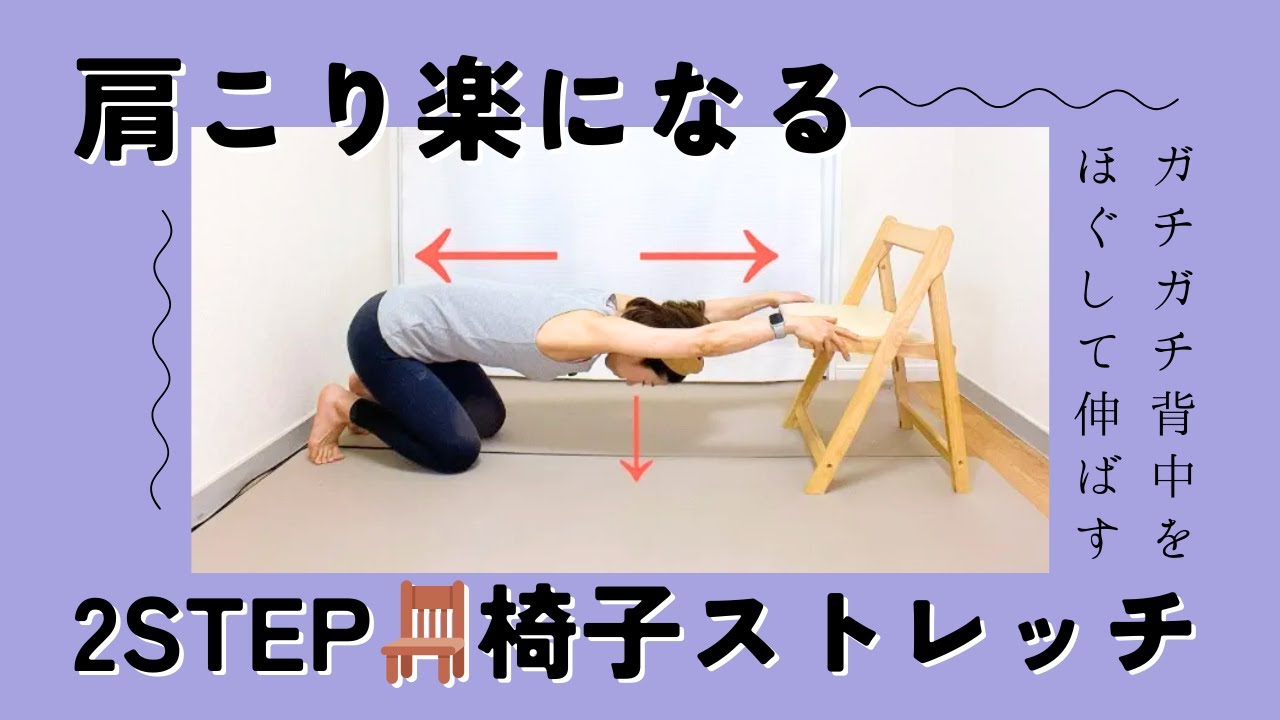 デスクワークや運動不足で肩こりがつらい人、背中が縮んでガチガチ…そんなあなたにおすすめ!椅子を道具として使う、簡単なセルフメンテナンスのやり方をご紹介します。硬くなった部分をほぐしてからしっかり伸ばす、2ステップのストレッチです。