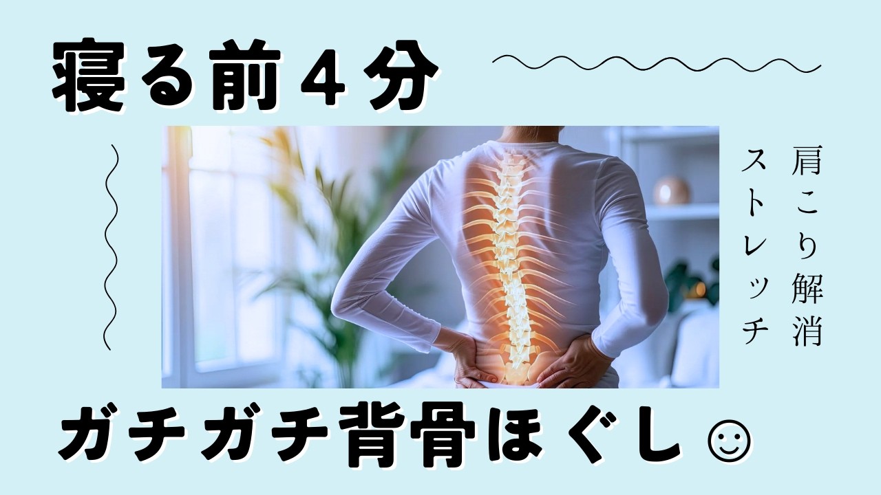 背中がガチガチで背骨が固まっている人、肩こりがつらい時におすすめの簡単なストレッチをご紹介します。背骨を横にしならせることで、胸が開き呼吸が深まります。更に、肩や脇を開くことで血液の流れを促進し、肩こりも改善します。ベッドの上でゆる~くできるので、早速今夜から試してみませんか?