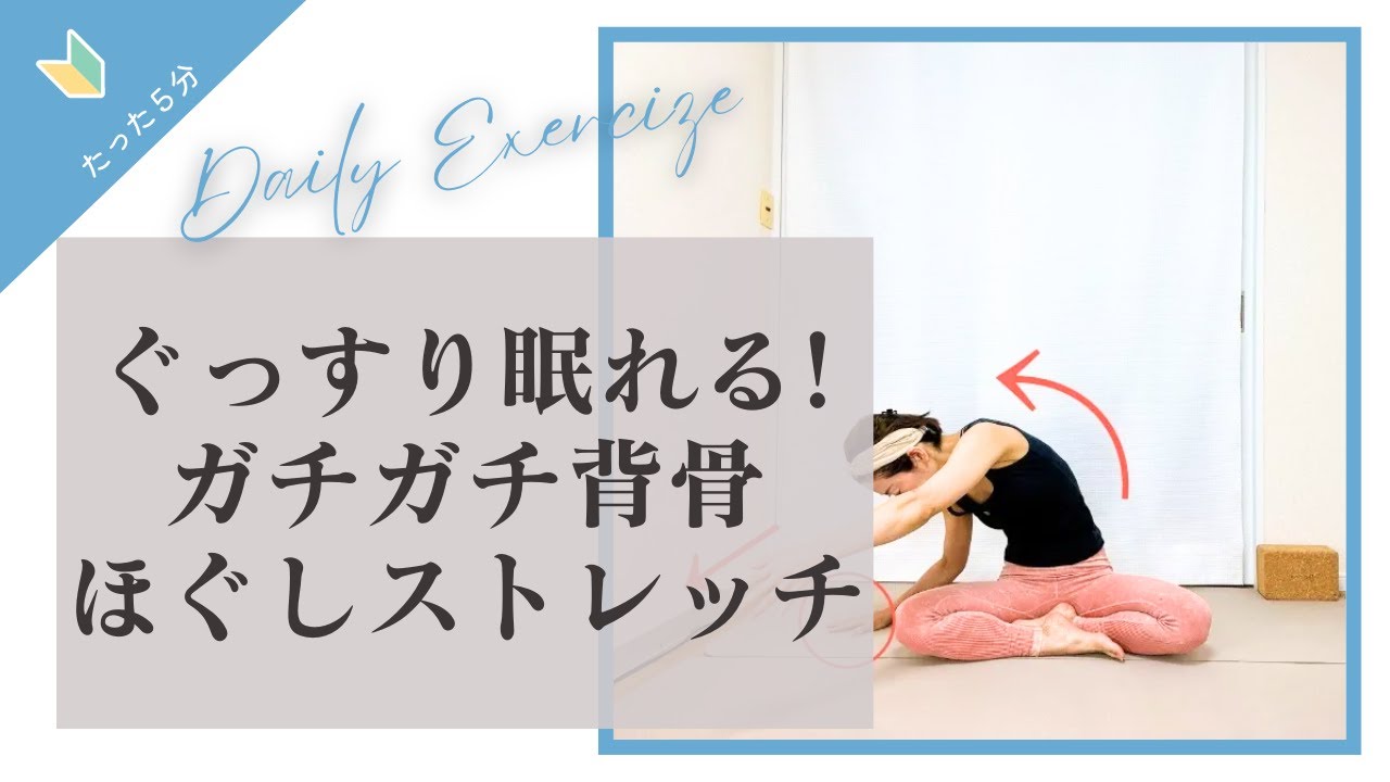 その日の疲れをその日のうちに解消するストレッチです。背骨周辺の筋肉がほぐれることで、血流がよくなりぐっすり眠れるようになりますよ。