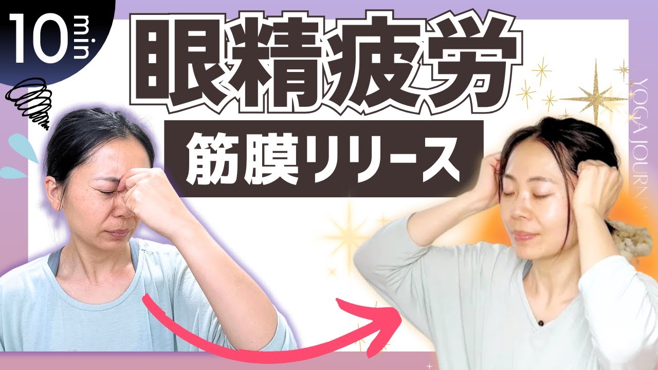 眼精疲労による目の疲れや肩こりなどの症状を感じていれば、目元や頭をほぐすのがおすすめ。セルフマッサージと筋肉を包む筋膜をほぐす筋膜リリースで筋肉をほぐして血行を促進し、スッキリした目や体の状態を目指しましょう。