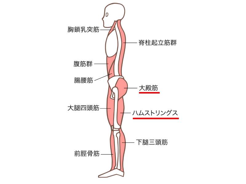 お尻をキュッと引き上げるには、実は、お尻の筋肉を鍛えるだけでは不十分です。お尻を下から持ち上げる働きのある、太腿の裏側の筋肉(ハムストリング)も鍛える必要があります。