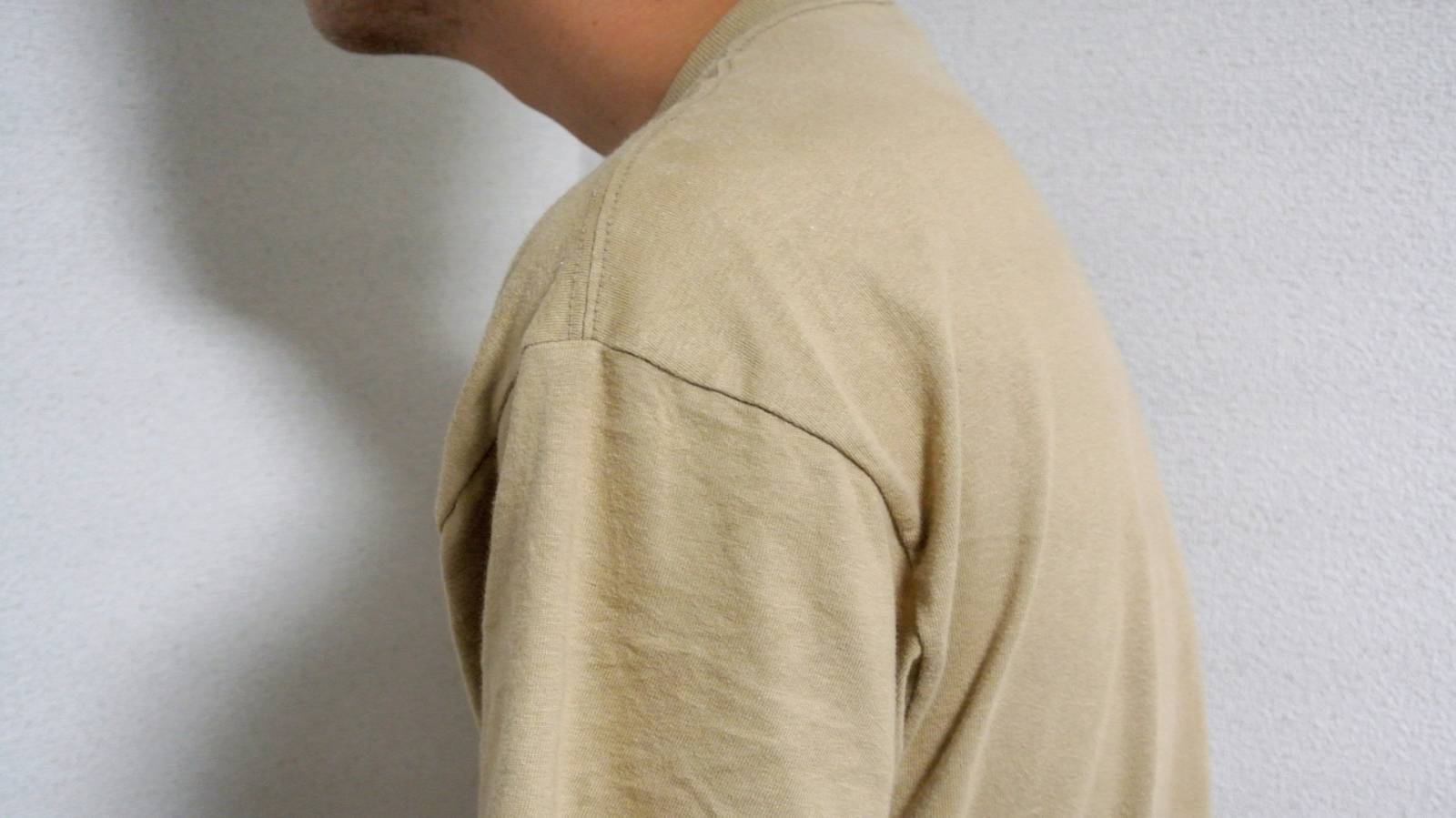 2)タオルを軽く前に引っ張りながら、タオルを押し返すようにタオルから上の背骨(胸椎)を丸める。