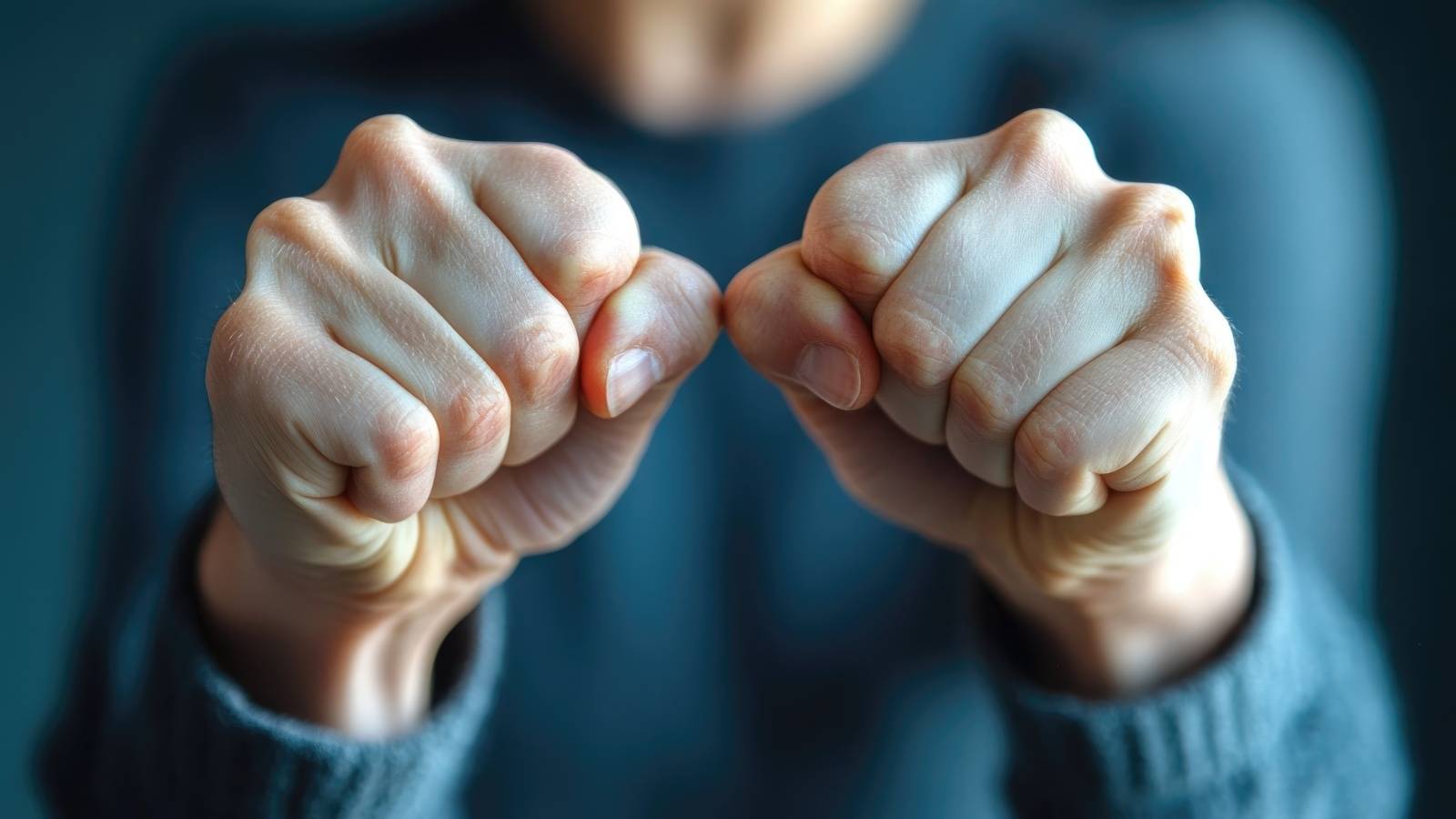 無意識にこぶしに力が入っている人に