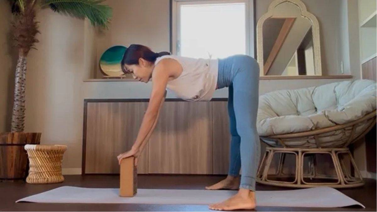 柔軟性が高まるブロックを使った開脚前屈