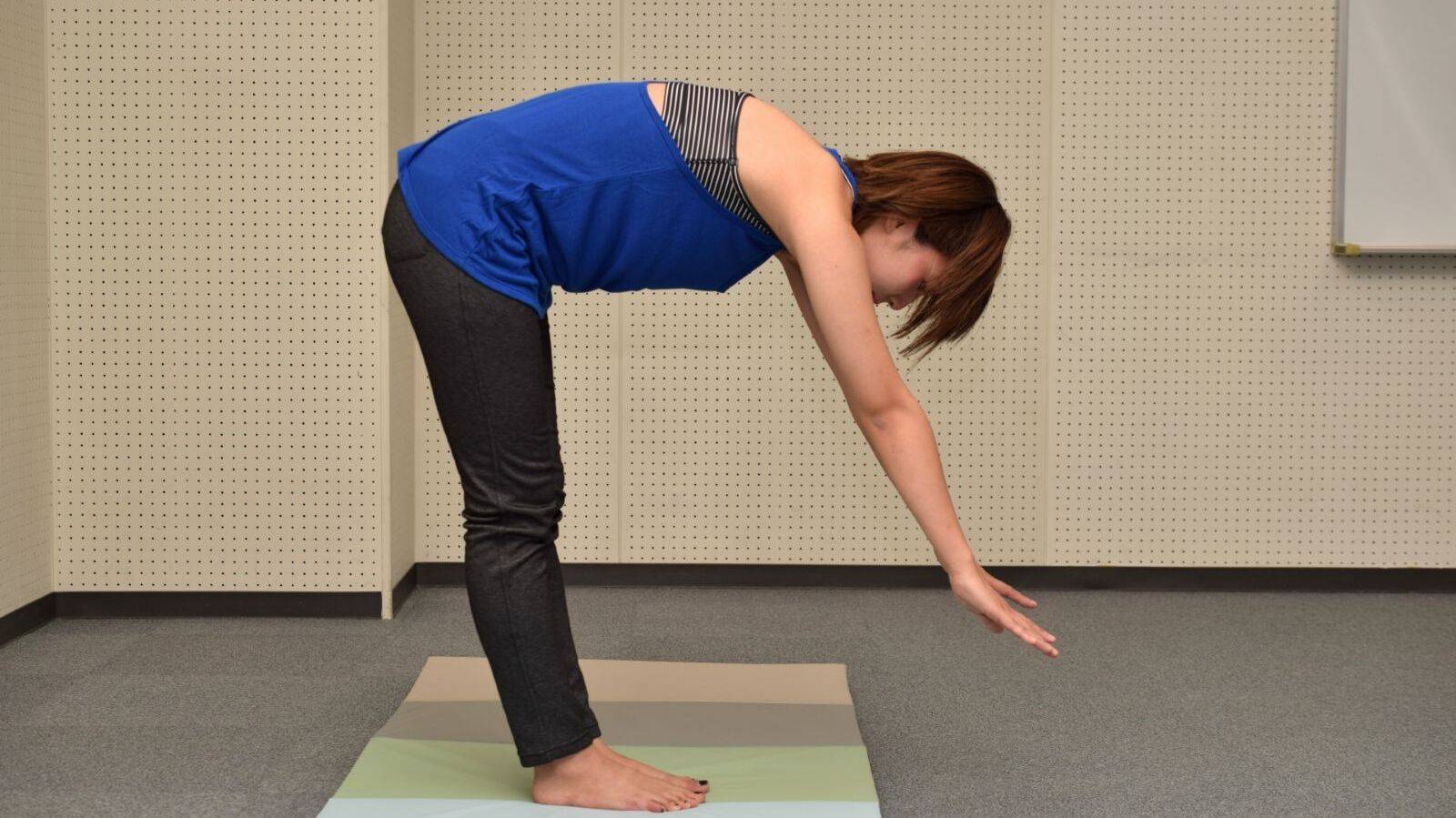 立って前屈を行う時、知らずのうちに「手のひらを床につけるのがゴール」「ひざを曲げてはいけない」など、それぞれの思い込みに囚われていることがあります。学校でやった体力テストの影響もあるのでしょうが、これは本来の目的とブレています。